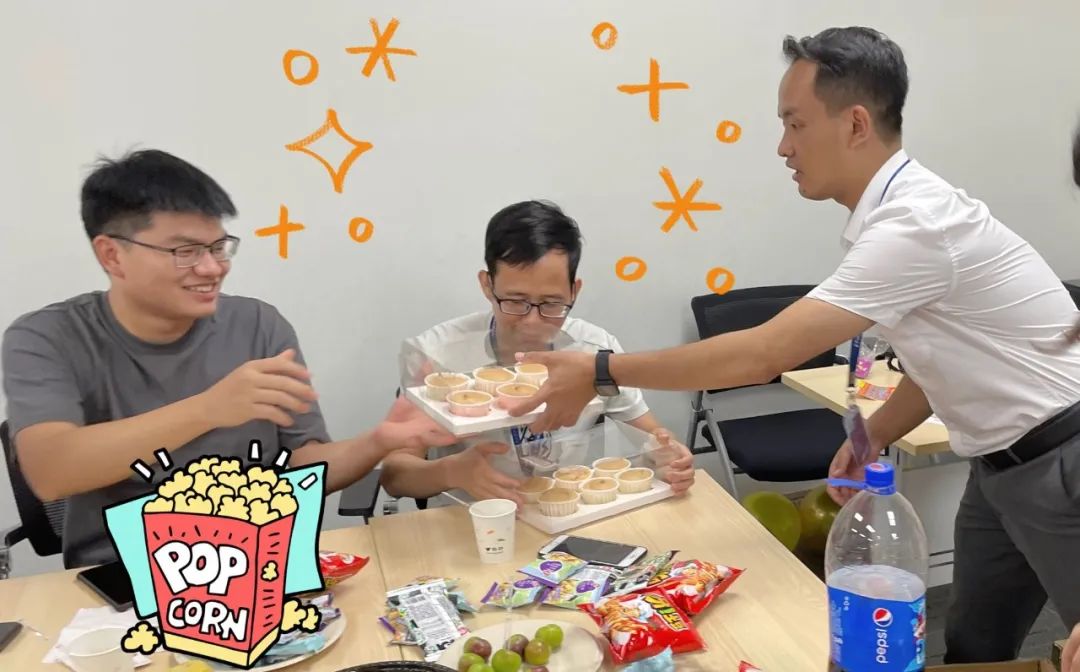 率先到場(chǎng)的壽星品嘗著(zhù)美味可口的零食與水果。